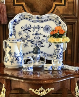 Das Zwiebelmuster ist das bekannteste Porzellandekor aller Zeiten. Es entstand bereits in der frühen Ming-Zeit im alten China. Im 17. Jahrhundert nahm die Porzellanmanufaktur Meißen das Dekor auf und ließ es auf sein weißes Porzellan auftragen. Damit wurde Meißner Porzellan vor allem dank des Zwiebelmusters im damaligen Europa bekannt. Später übernahmen auch viele andere Porzellanmanufakturen das schöne blaue Muster. Ergänzen Sie es beliebig, denn Zwiebelmuster Geschirr passt zu vielen Anlässen. Das kann das elegante Abendessen mit Freunden sein, die Sommerparty im Garten oder die Teestunde daheim.