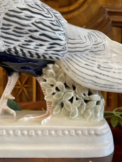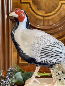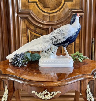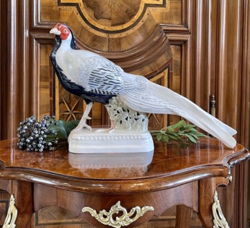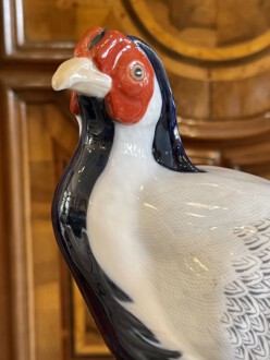 Meissen Figur Silberfasan – Entwurf von Max Bochmann um 1910 – Weißporzellan mit polychromer Fassung – auf rechteckigem Sockel stehender Silberfasan – Modellnummer A261 – Malernummer 1 – Höhe ca. 26cm und Länge ca. 38cm.